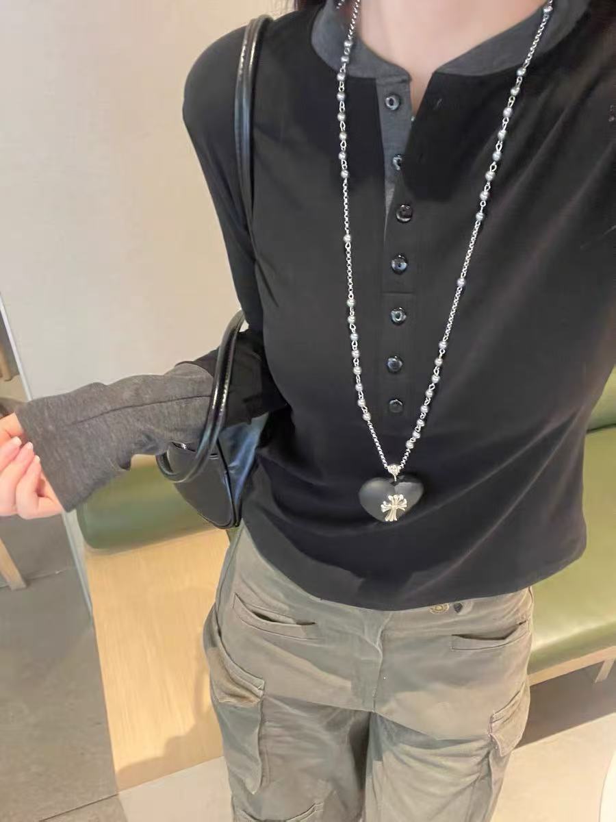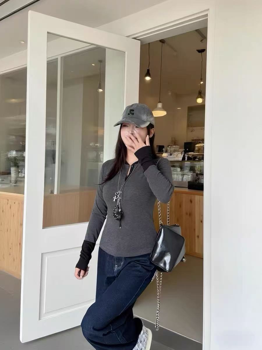 フェイクレイヤードデザインがスタイルに奥行きを与えるヘンリーネックトップス。