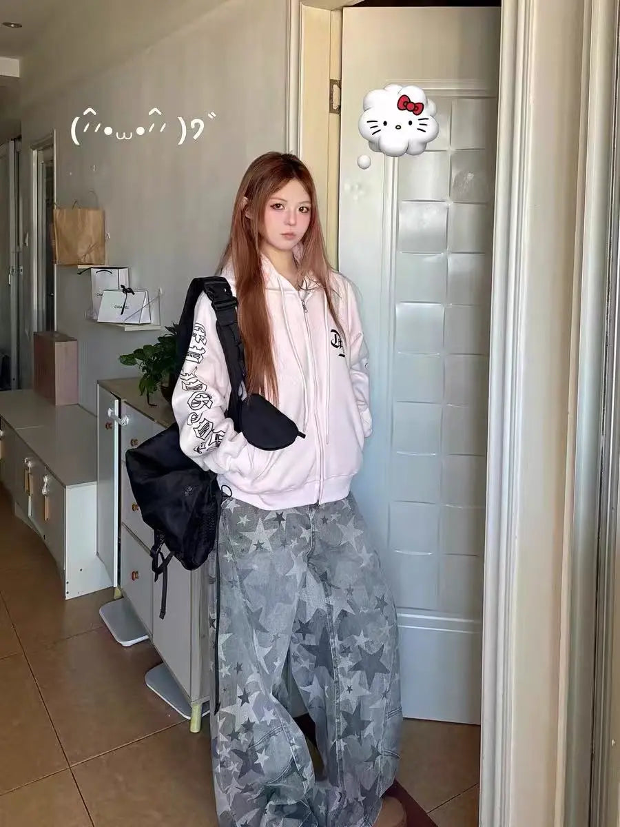 Vintage Star Panel Zip Hoodie Jacket OL2125