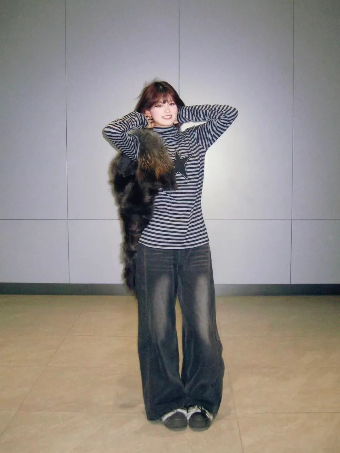 Striped Bunny Hood Fleece Lined Hoodie OL2012